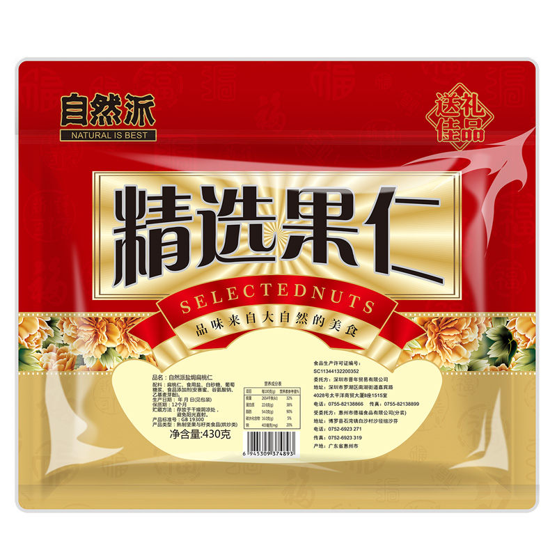 • 商品名称:自然派盐焗扁桃仁430g巴旦木炒货孕妇零食早餐坚果大颗粒袋装年货